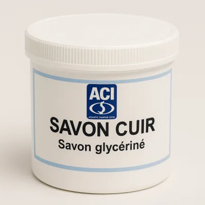 Savon Cuir est un nettoyant professionnel à base de véritable savon glycériné, spécialement formulé pour l’entretien régulier de tous les types de cuirs : fauteuils, sellerie, chaussures, équipements d’équitation, sièges automobiles ou mobilier. Sans phosphates, sans solvants, sans substances dangereuses ni COV, il offre un nettoyage doux, efficace et respectueux des surfaces et de l’environnement.